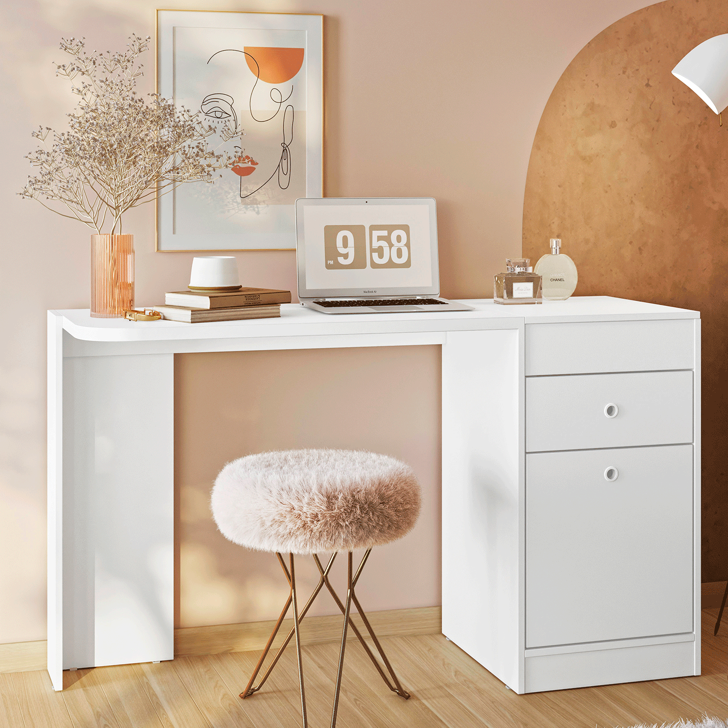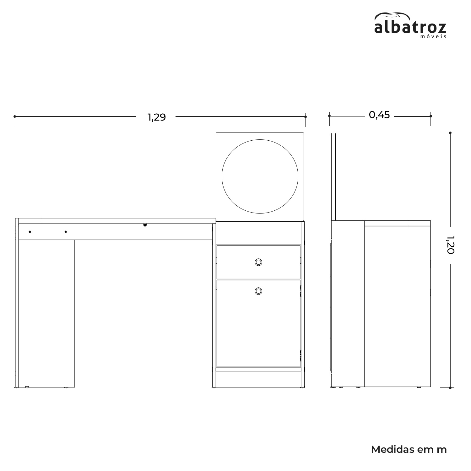 Equipada com 1 gavetas amplas, oferece excelente capacidade para armazenar maquiagens, acessórios e produtos de uso pessoal. O tampo largo é ideal para dispor espelhos, luminárias e objetos decorativos.