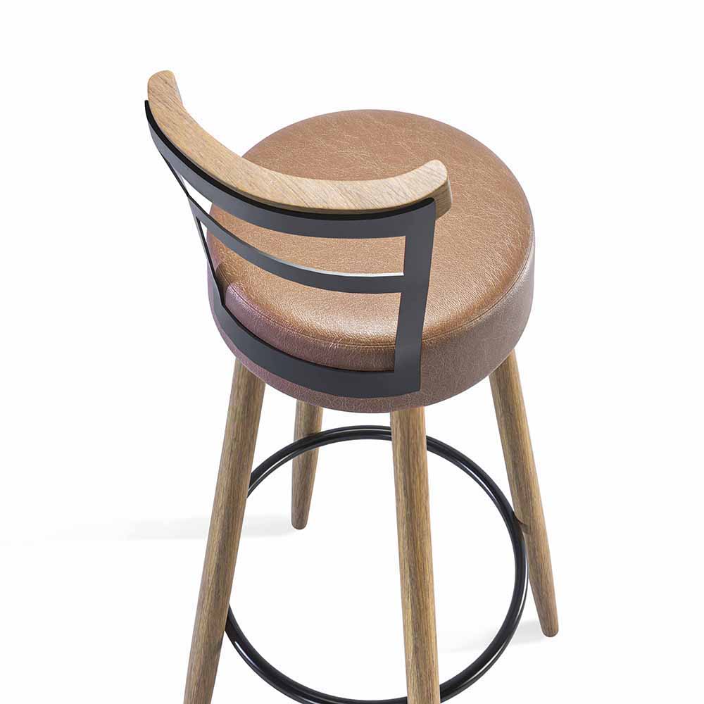 Banqueta Alta Moscou Alta com Estrutura em Aço e Pés de Madeira