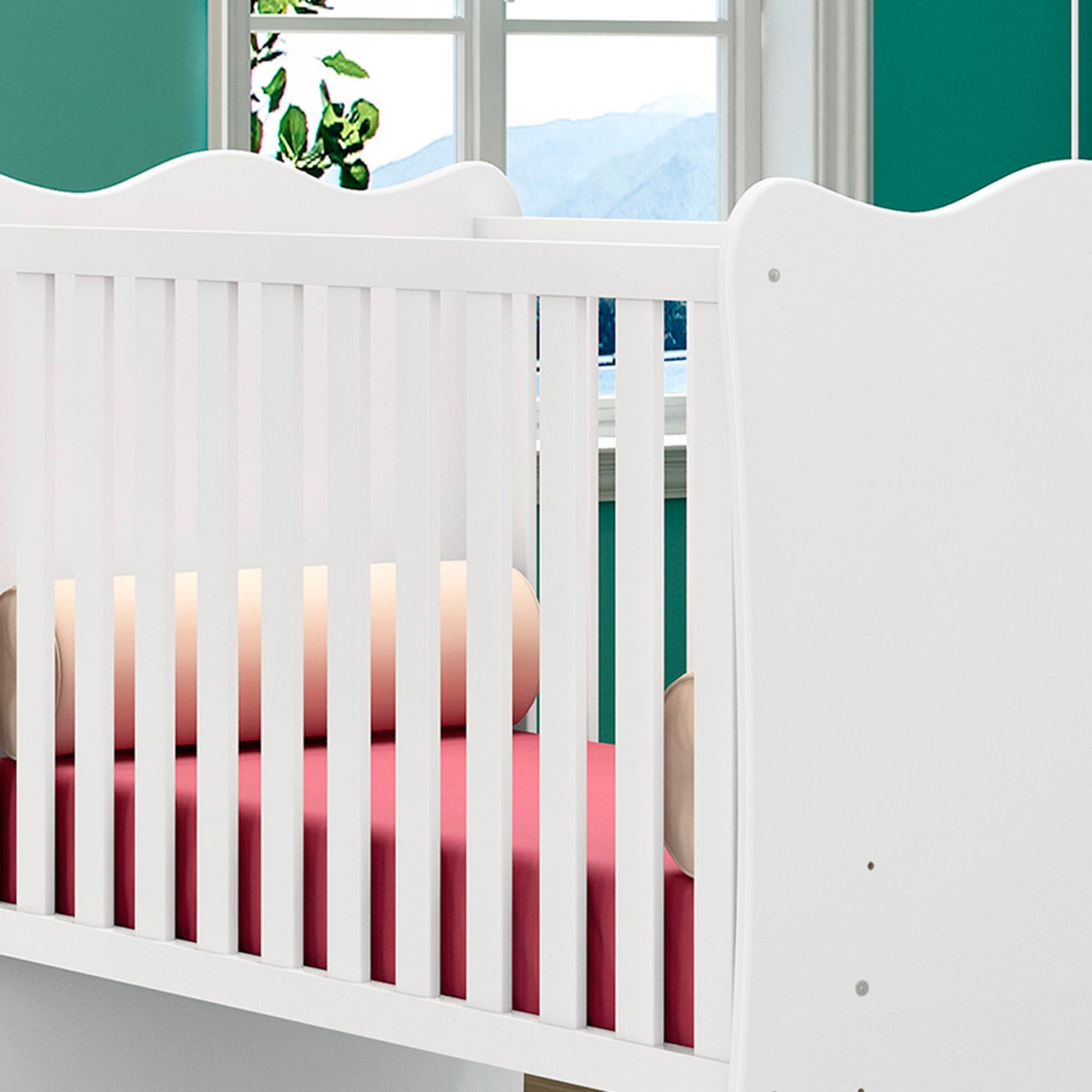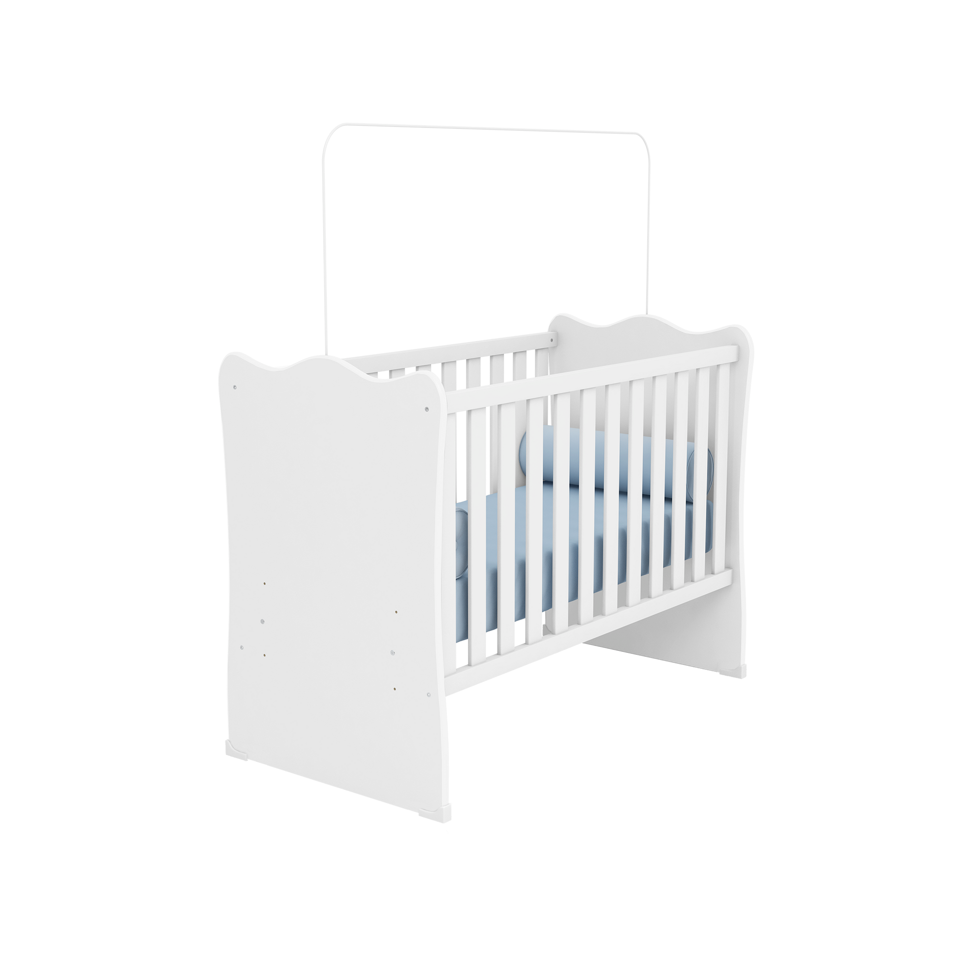 Com linhas suaves e acabamento em pintura UV de brilho e toque fosco, o berço se adapta a qualquer decoração, criando um espaço acolhedor. O suporte para mosquiteiro garante noites livres de insetos e acrescenta um toque de elegância ao quarto.