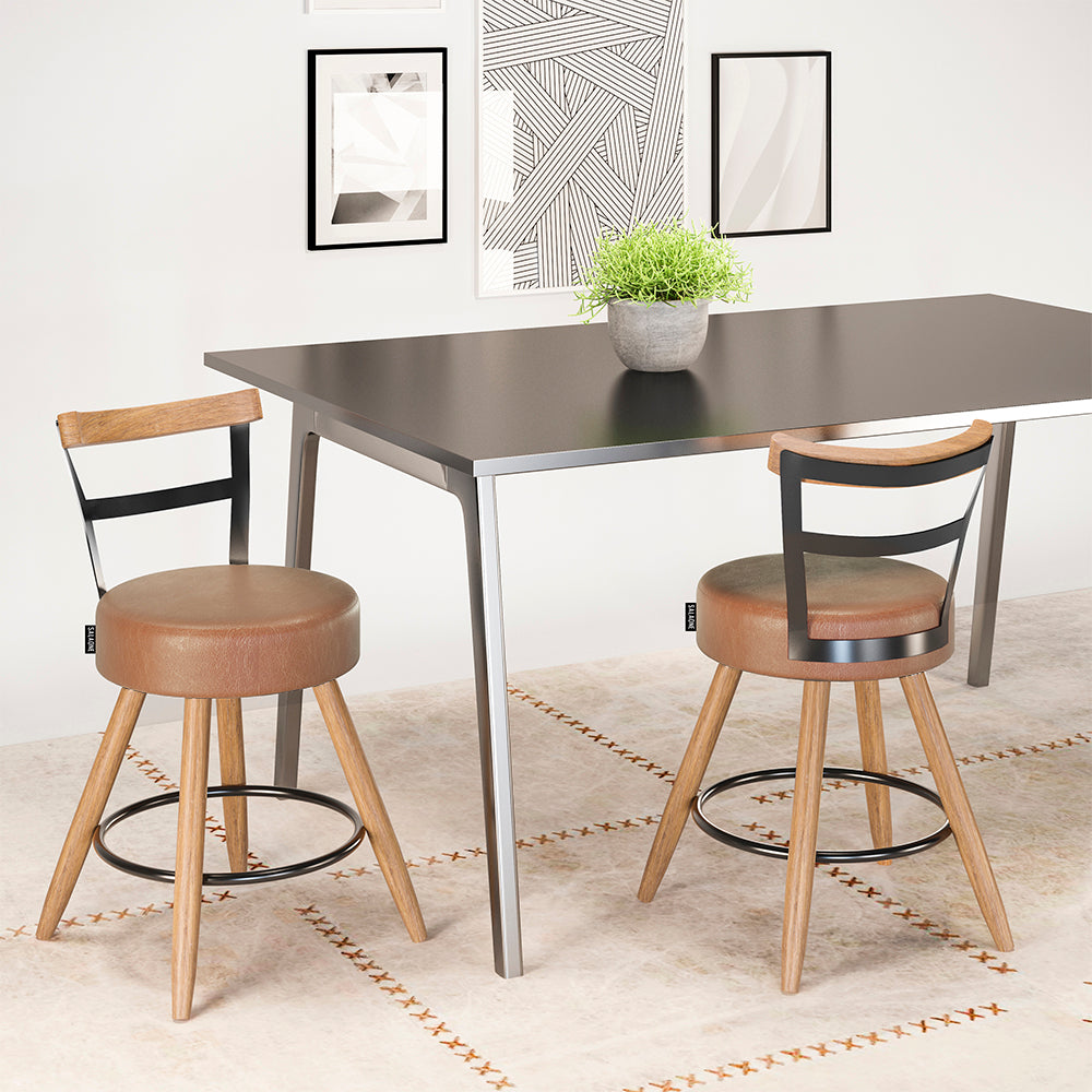 O assento estofado com espuma D-28 e revestimento em courissimo ou suede proporciona máximo conforto e durabilidade. A estrutura em madeira de reflorestamento e aço com pintura epóxi garante resistência e acabamento refinado.
