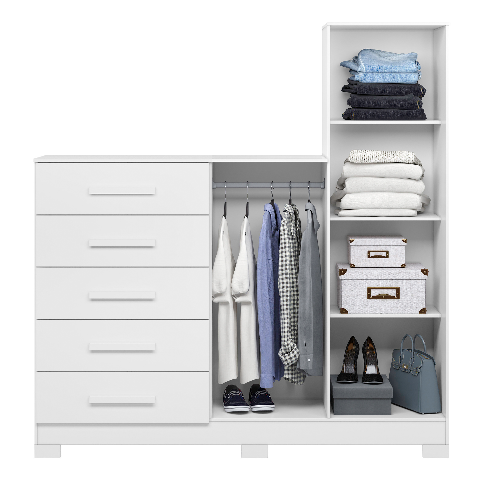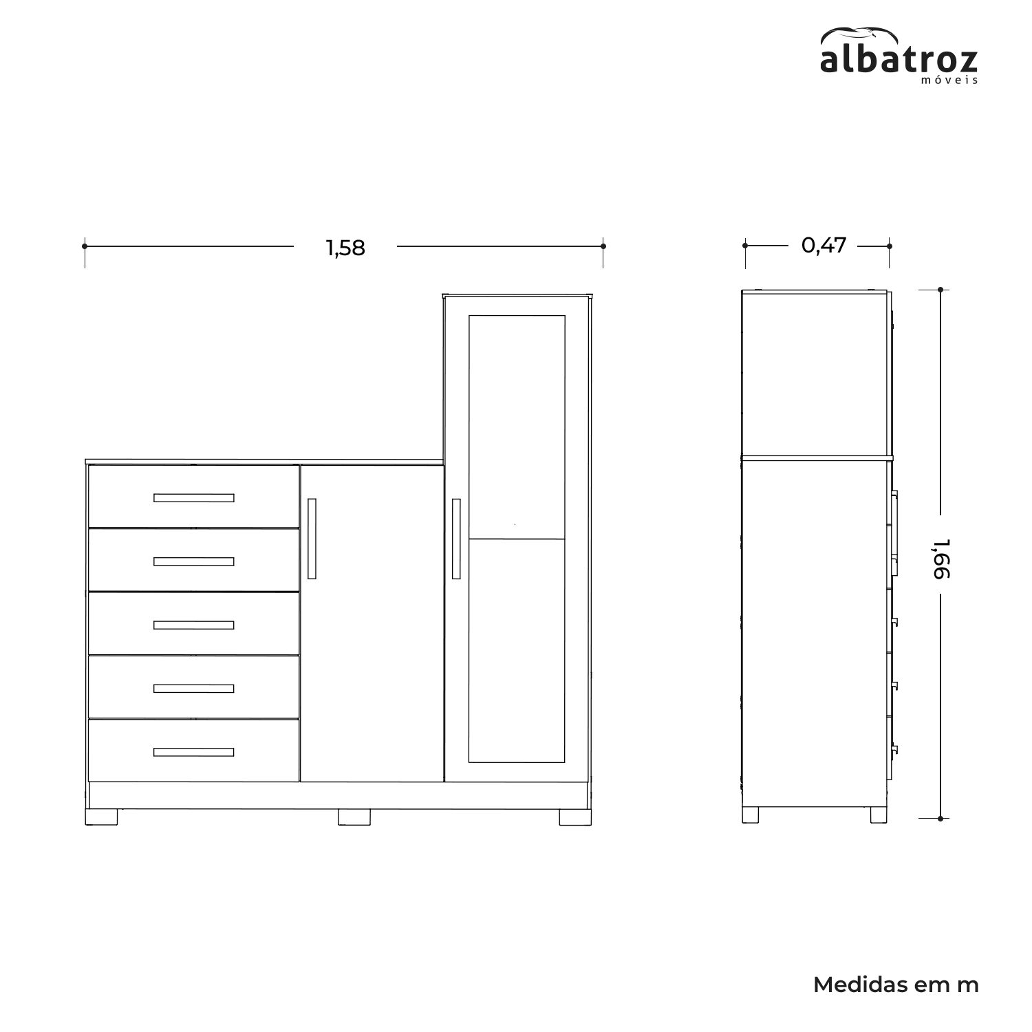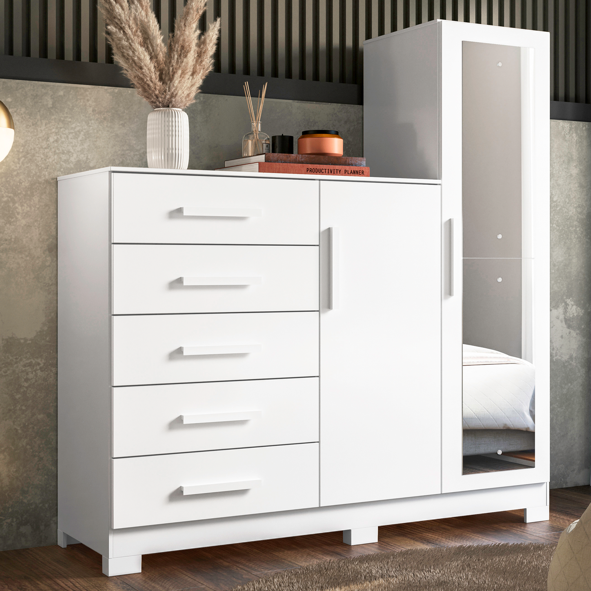 Com 5 gavetas amplas, permite armazenar roupas, acessórios e objetos pessoais de forma prática, mantendo o ambiente sempre organizado.