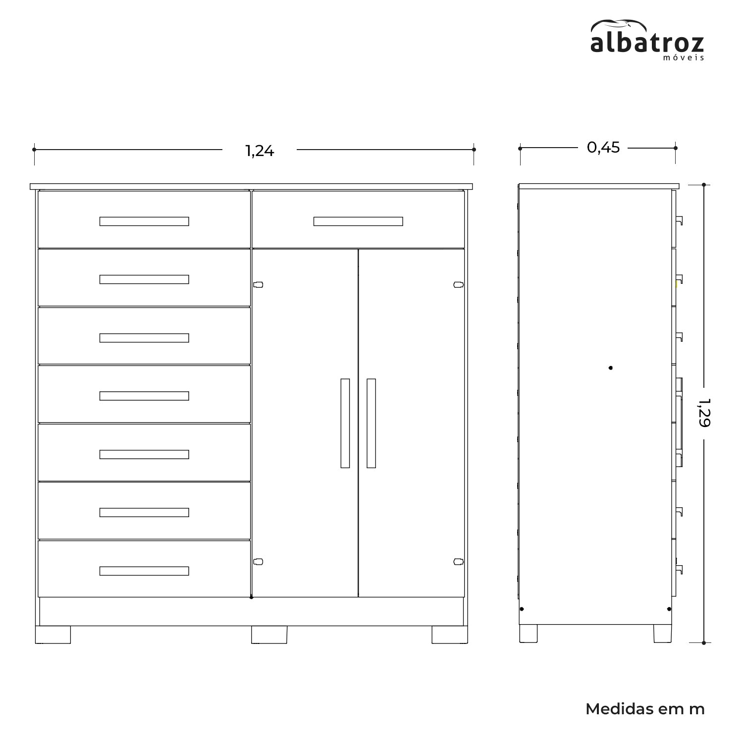 Com 8 gavetas de fácil abertura e fechamento, mantém roupas, acessórios e itens pessoais bem organizados e acessíveis.