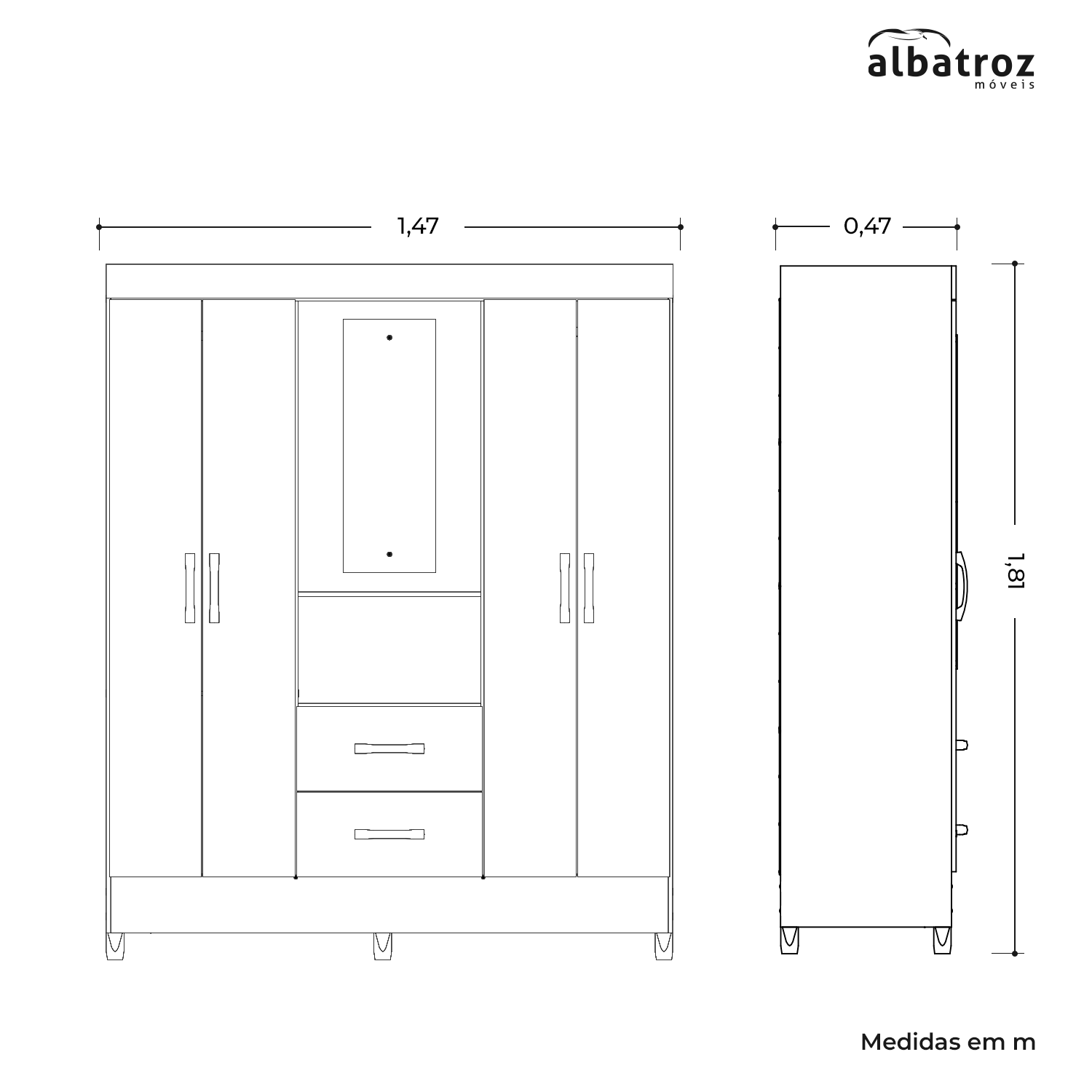 - Medidas do produto: Altura 1,81 m x Largura 1,47 m x Profundidade 0,47 m