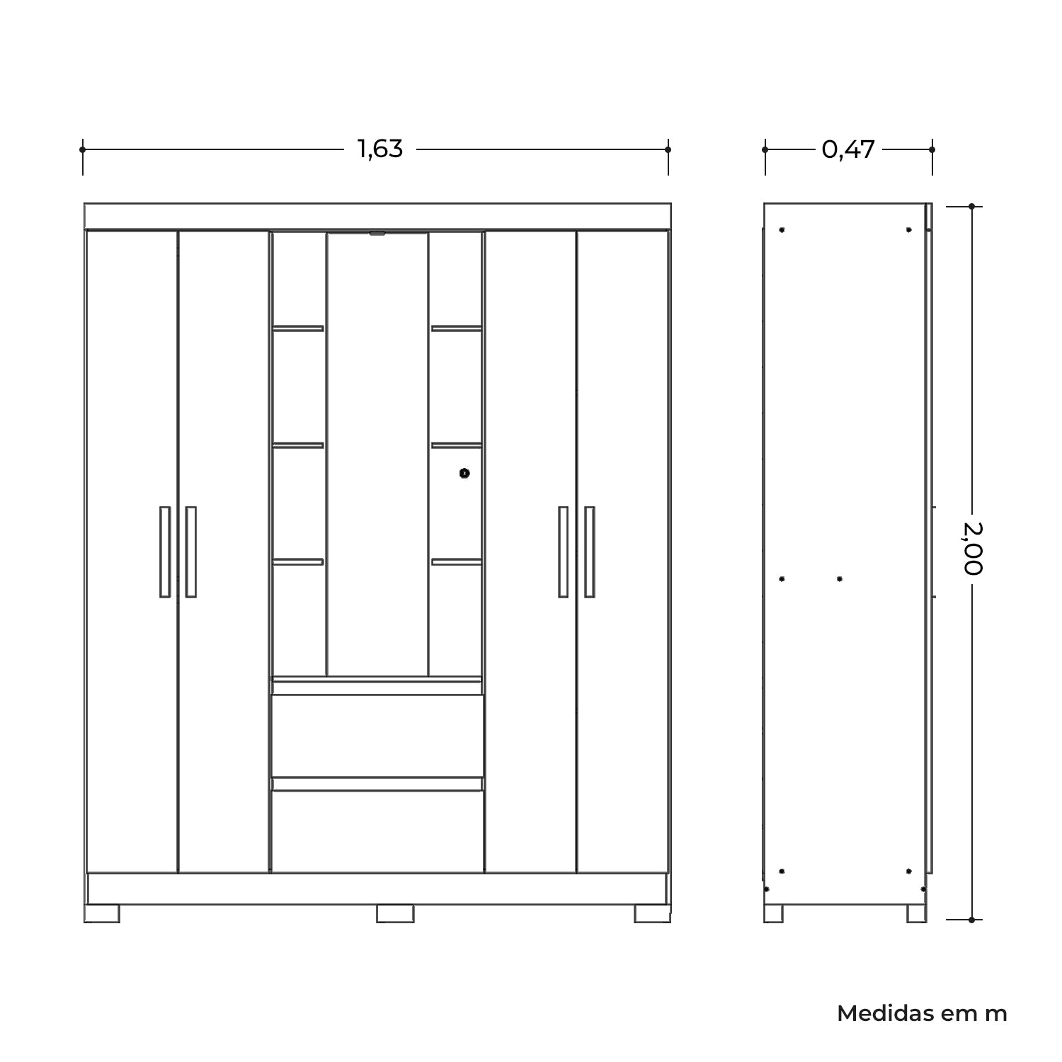 - Medidas do produto: Altura 2,00 m x Largura 1,63 m x Profundidade 0,47 m