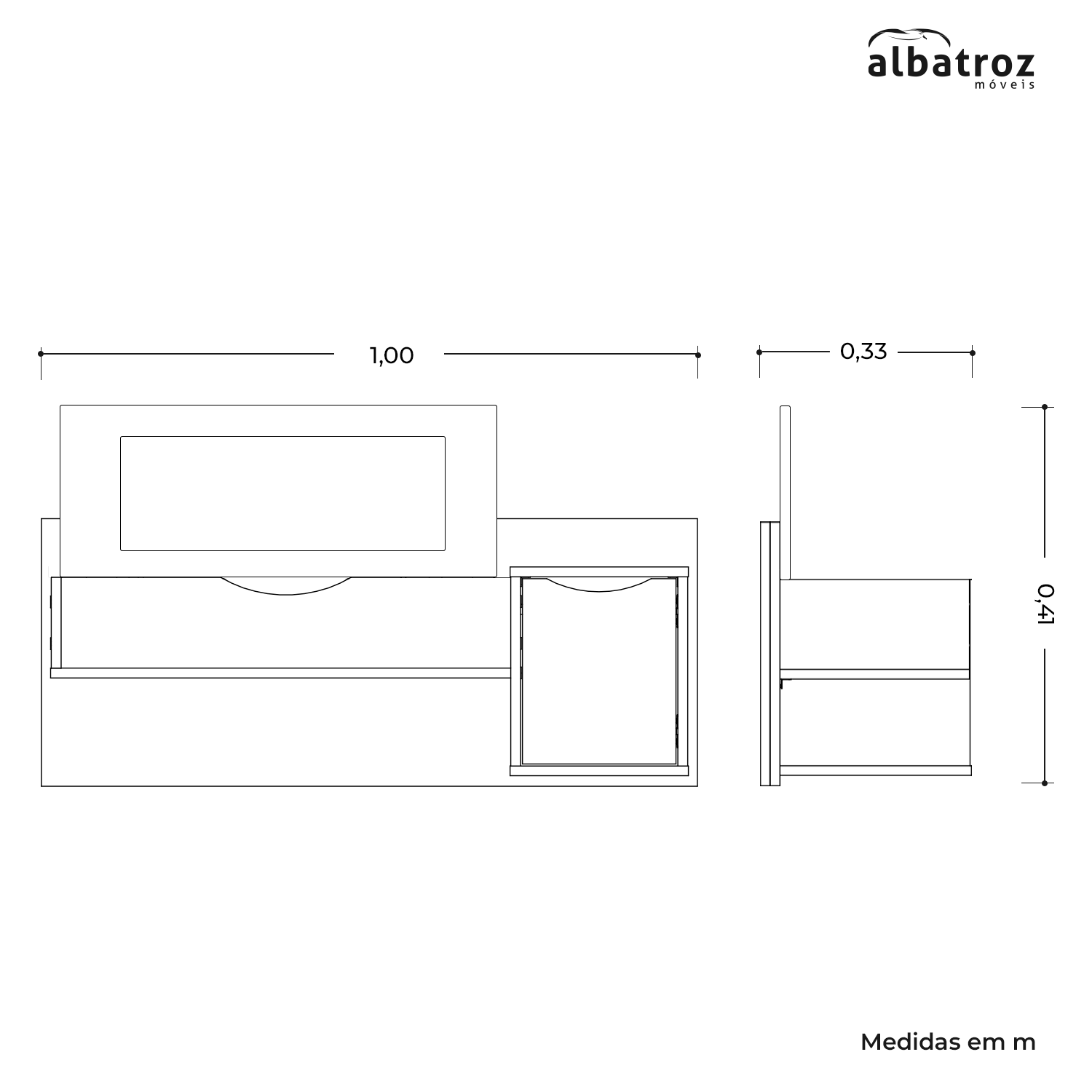 - Medidas do Produto: Altura 0,41 m x Largura 1,00 m x Profundidade 0,33 m