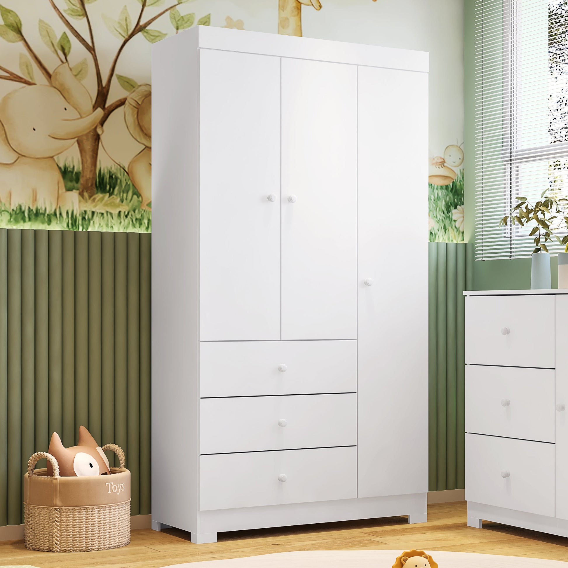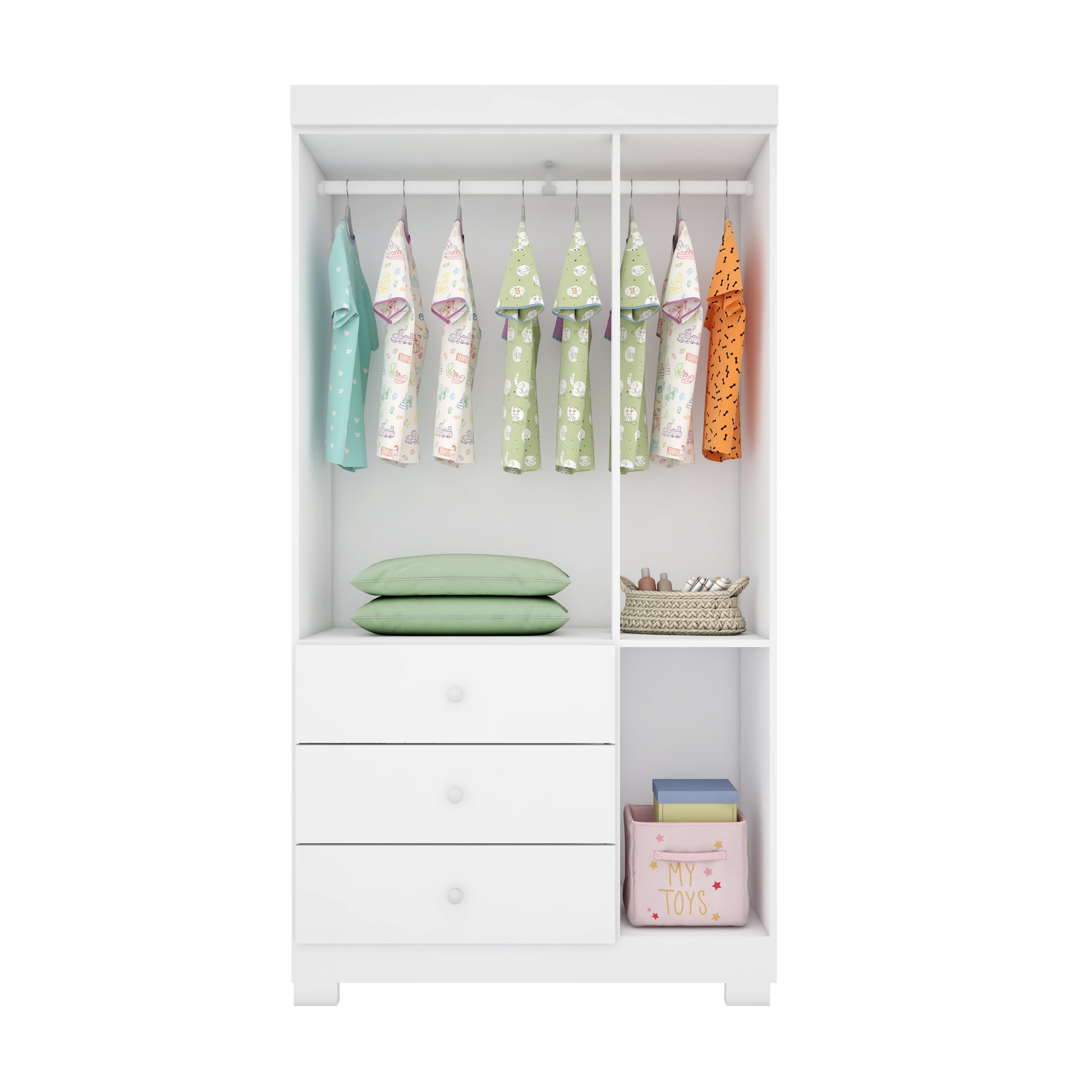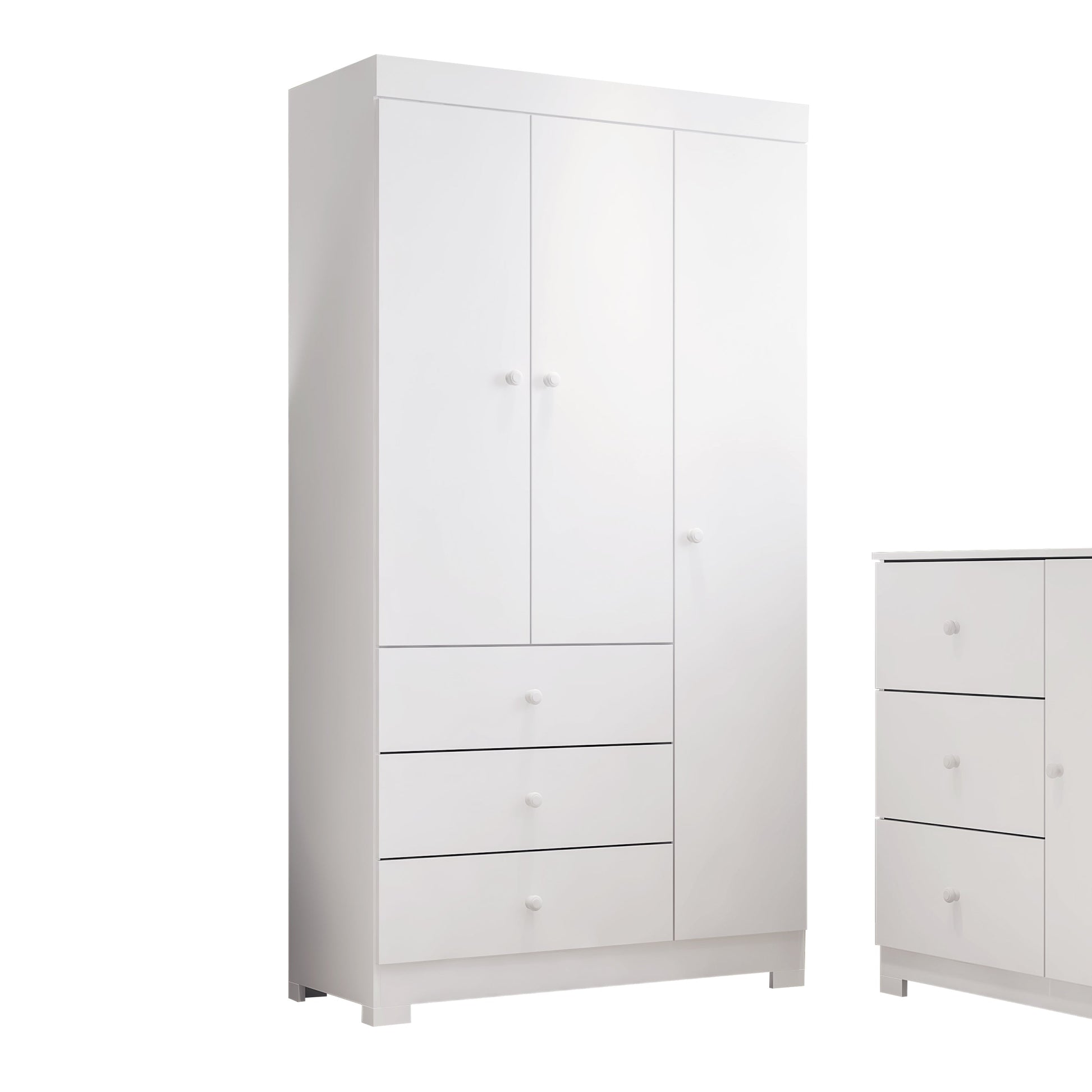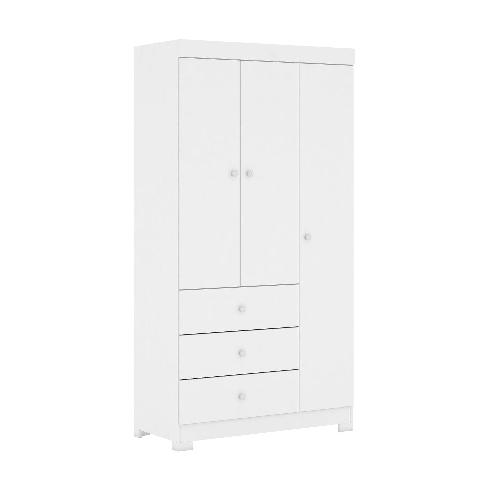 Roupeiro Duda 3 Portas 100% MDF com Puxadores em PVC e Corrediças Telescópicas